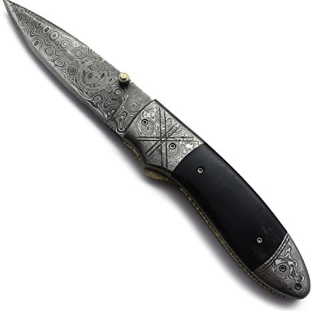 - This Damascus steel knife is Effortless, Durable & Easily Cuts Through Food Such as Meat, Fruit & vegetables. Damascus pocket knife is a very cool knife and fits in perfectly with outdoor gear. Damascus knife is widely used for men's gifts, women's and men's gifts for birthdays, Valentine's Day gifts for men, pocket knives, and camping cookware and makes a beautiful and practical choice for a perfect men's birthday gift.