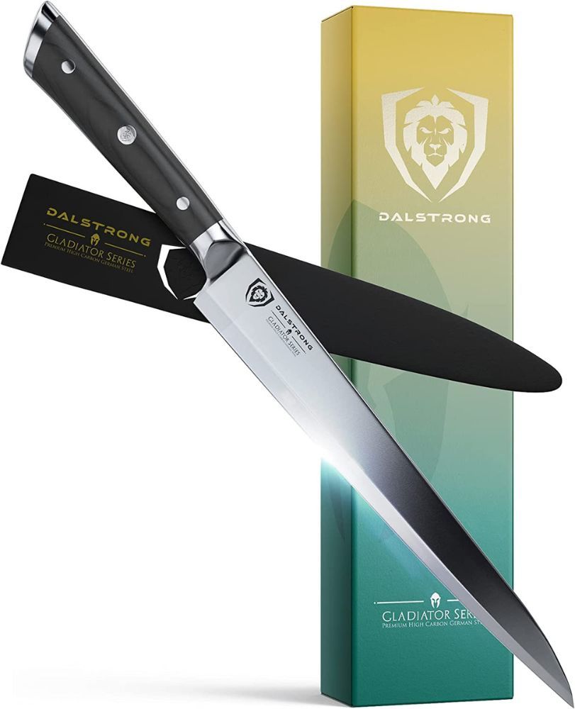 - IDEAL MEAT KNIFE: The long, narrow blade of this kitchen knife allows you to make a cleaner cut – keeping more of the juice and flavor inside the meat.
