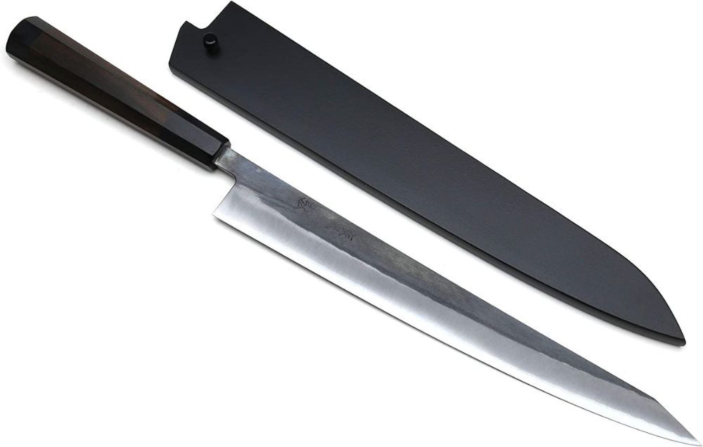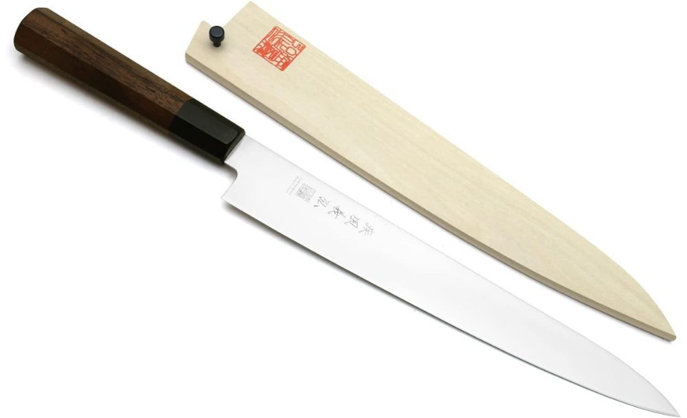 - Proudly made in Japan and not mass-produced. This knife is complimented with a traditional Japanese Wa-style handcrafted Octagonal Handle that is lightweight and ergonomically welds to the hand for seamless use. An optional and recommended protective wooden sheath called a Saya can be purchased together, which protects the knife and adds to its appearance when not in use. Every knife from Yoshihiro is handcrafted by master artisans creating a unique one-of-a-kind work of art.