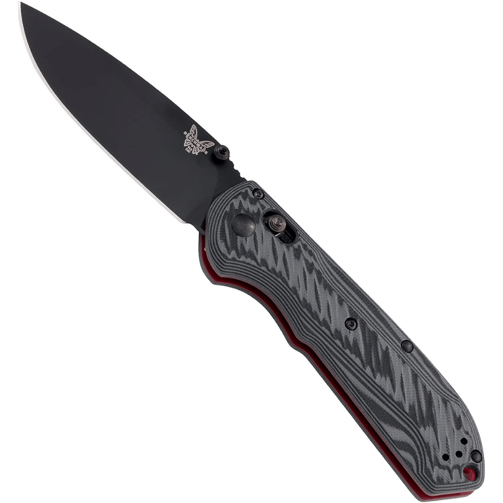 The gray and black layered G10 is milled to provide excellent grip and style, while the red G10 base layer and anodized aluminum barrel spacers bring an additional pop of color to the handles of this pocket knife.