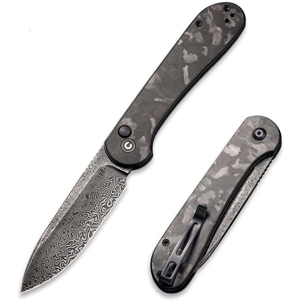 CIVIVI Pocket Folding Knife with 3.47" Damascus Blade Marble Carbon Fiber Handle