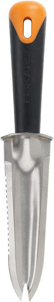 - Fiskars Hori Hori Garden Tool is designed to weed, plant, split, transplant and more, with extended tang for added durability