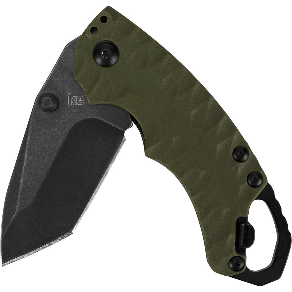 The Shuffle II Olive is a lightweight tactical knife with an Isonite 8Cr13MoV stainless steel blade. It features both practical and aesthetically pleasing design elements such as the reversible pocket clip, a handy bottle opener on either side of its handle, a lanyard hole if you want to wear it around your neck while working outdoors, etc., dual thumb studs for easy opening without having worry about accidentally cutting yourself when manually pulling back some edged weapon from attacker's grasp - also making this great choice whether right-handed consensual grip will be used during a combat situation.