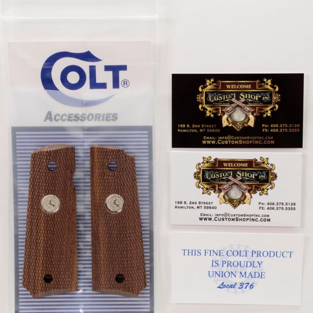 Custom Shop Inc. Colt 1911 Factory Original Wood Grips with Silver Medallions in Brown