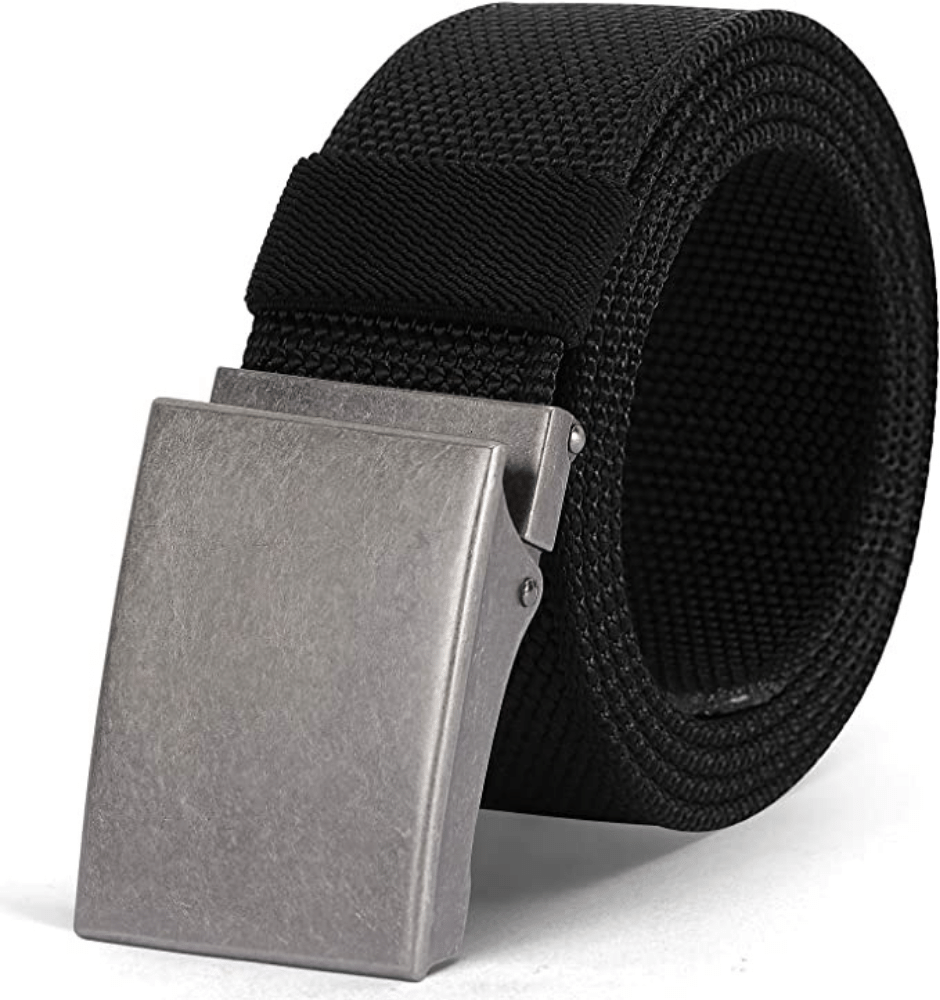 This nylon belt is easy on the environment and features a stylish antique brass buckle and quick-release fastener. The breathable nylon webbing is heavy-duty and can bear a lot of weight without breaking. Plus, it's quite comfortable to wear thanks to the soft waistband.