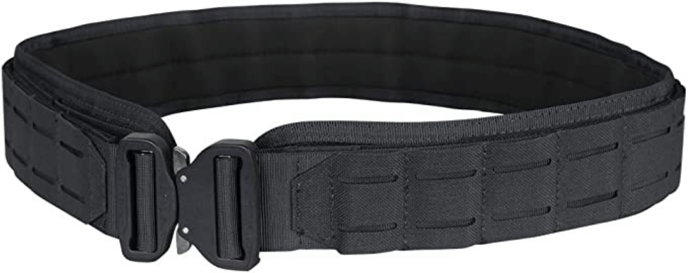 This belt is double-layered for extra strength, has laser-cut Molle slots for added durability, and comes with a removable layer.