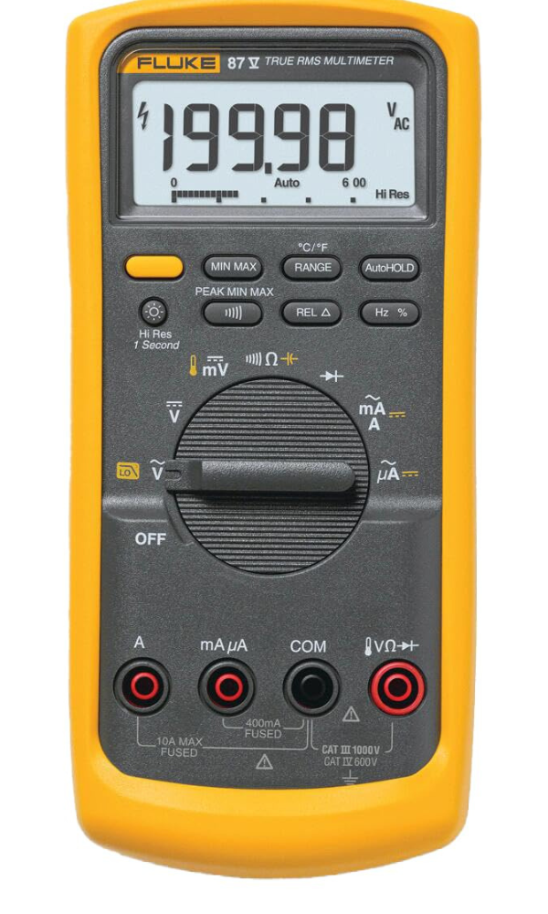 For added convenience, it features a removable holster, a test probe holder for easy viewing during testing, and a relative mode to improve low-resistance measurement accuracy by eliminating test lead resistance. Plus, it fits into an optional magnetic hanger for hands-free use. Made in the U.S. with a lifetime warranty, the Fluke 87V Industrial Multimeter is built to last and support professionals everywhere.