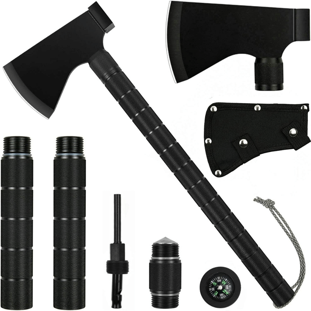 In a survival situation, a compact survival axe can do a lot. It can be used to chop smaller logs, build shelters, and hunt game.