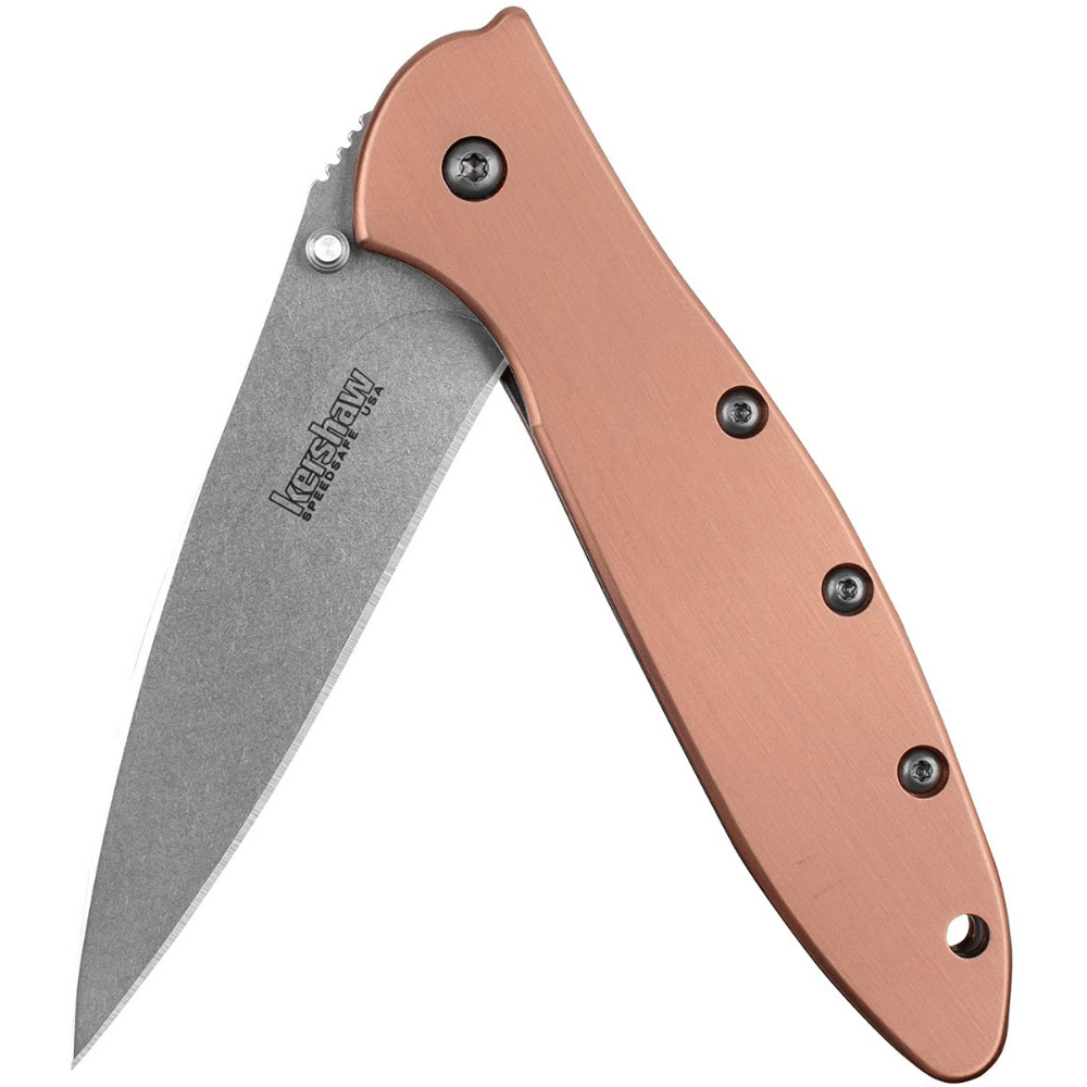 The Kershaw Leek just got a whole lot sleeker – and classier. Now made with a solid copper handle, this is the perfect everyday carry. With a 3-inch blade made of high-performance CPM 154, it can tackle any cutting task you throw its way. The slim design makes it easy to carry, and the Tip-Lock slider helps keep the sharp blade locked for safety when you're done using it. Over time, the copper handle will develop its own unique patina, making your Leek one of a kind. Whether you're using it for work or play, this knife can do it all – and look good doing it. With a price tag under $100, you can't go wrong.