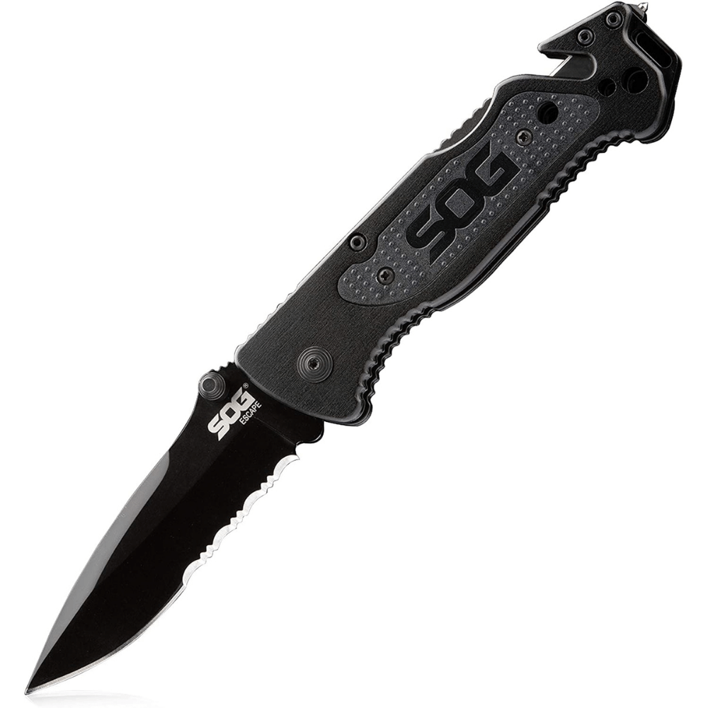 SOG Escape Tactical Folding Knife- 3.4 Inch Serrated Edge Blade Emergency Pocket Knife