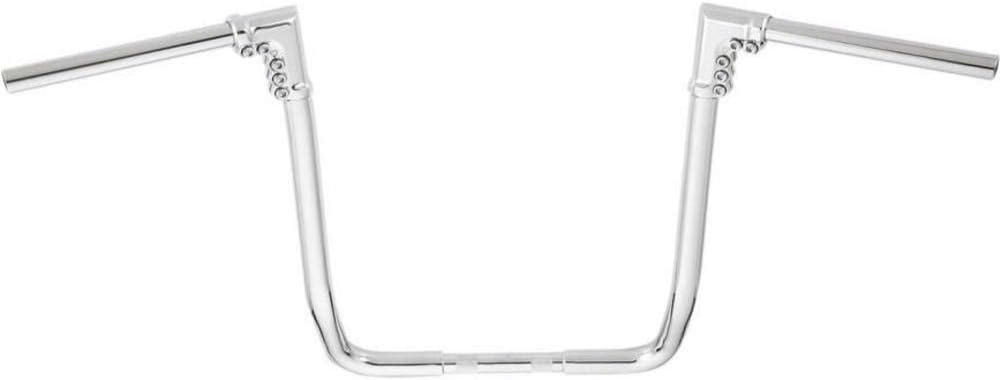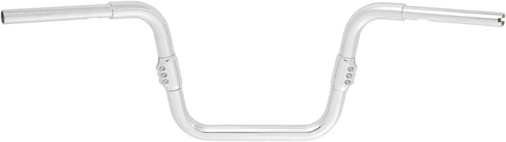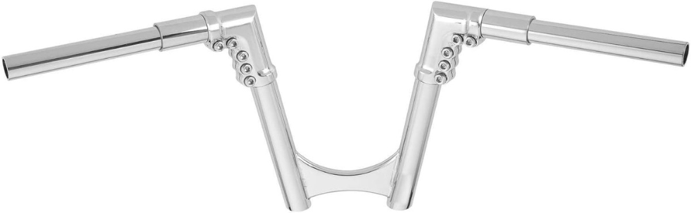 Innovative 1-1/4-inch steel handlebars with billet aluminum junction clamps for adjustable comfort. Features Mini-Ape styling for a unique look. Multi-piece design for easy installation and customizable bar angle. End Rise: 12 inches. Width: 38 inches. Ideal for customizing your riding experience with comfort and style.