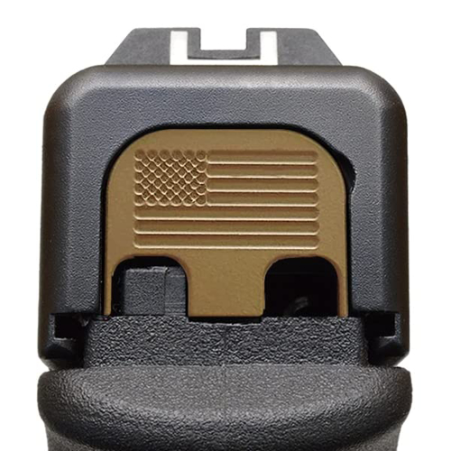 Milspin CNC Engraved Slide Back Plate for Glock Gen 1-5, Model 17 19 21 22 23 24 26 27 29 30 31 32 34 35 36 37 38 39 40 41 | Coyote Tan American Flag | Veteran Crafted in USA