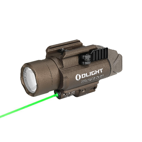 OLIGHT Baldr Pro 1350 Lumens Tactical Weaponlight with Green Light and White LED, 260 Meters Beam Distance Compatible with 1913 or GL Rail, Batteries Included(Desert Tan)
