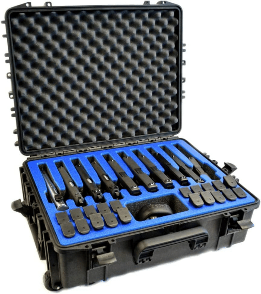 MYCASEBUILDER 10 Pistol 20 Magazine Doro Wheeled Gun Case with Custom Foam Insert - Waterproof, Heavy Duty - Tactical Firearms and Ammunition Holder - 23.8 x 18.6 x 8.9 Inches