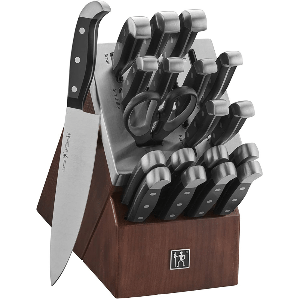 HENCKELS Statement 20-pc Self-Sharpening Knife Set with Block, Chef Knife, Paring Knife, Utility Knife, Bread Knife, Steak Knife Set, Dark Brown, Stainless Steel