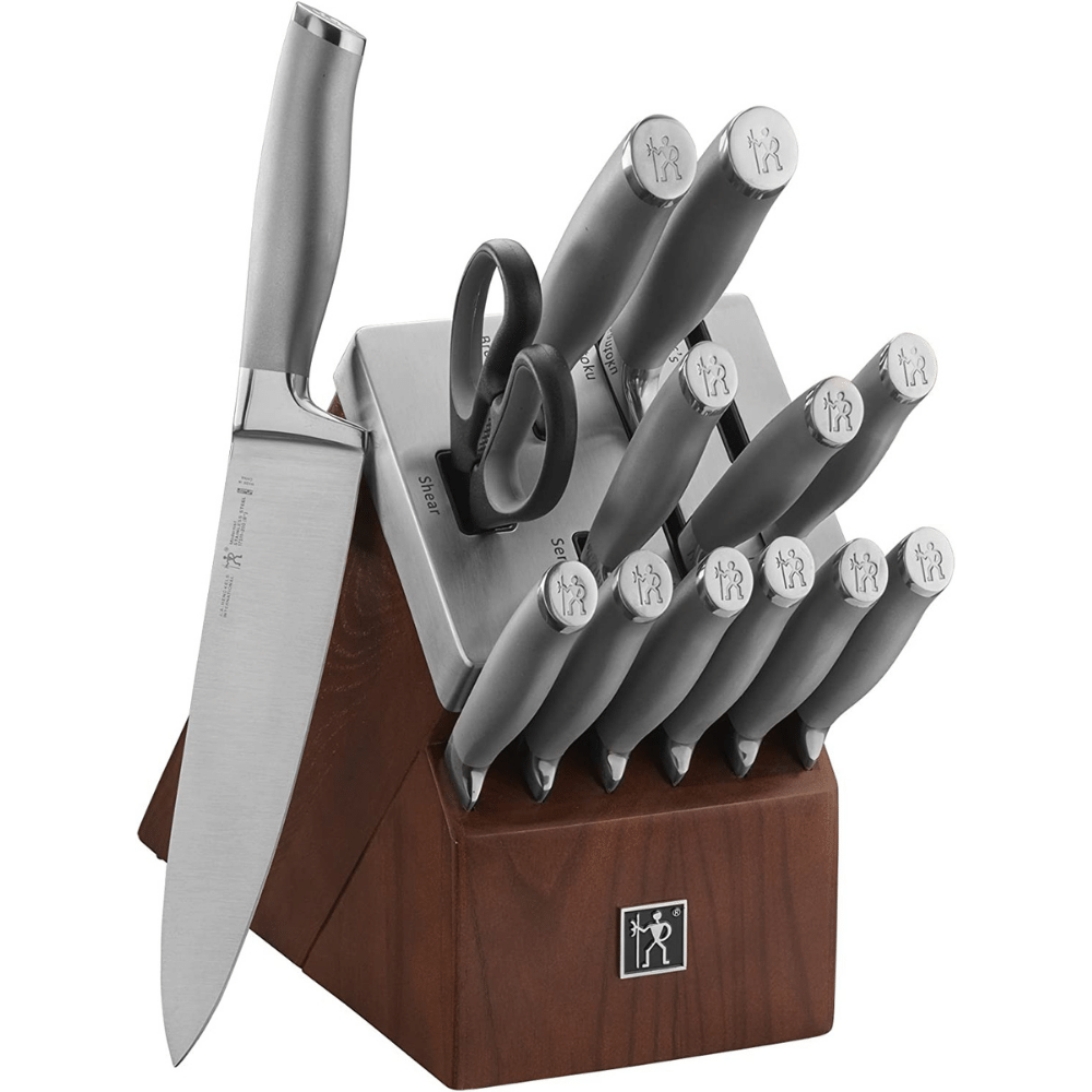 Henckels Modernist 14-pc Self-Sharpening Knife Set with Block, Chef Knife, Paring Knife, Bread Knife, Steak Knife, Dark Brown, Stainless Steel