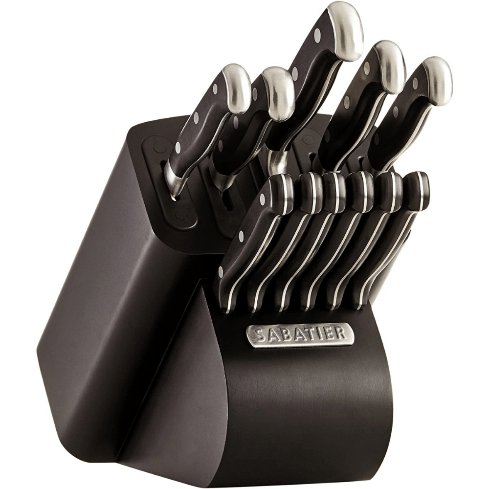 Sabatier Self-Sharpening Edgekeeper Pro 12-Piece Forged Triple Rivet Knife Block Set, Black