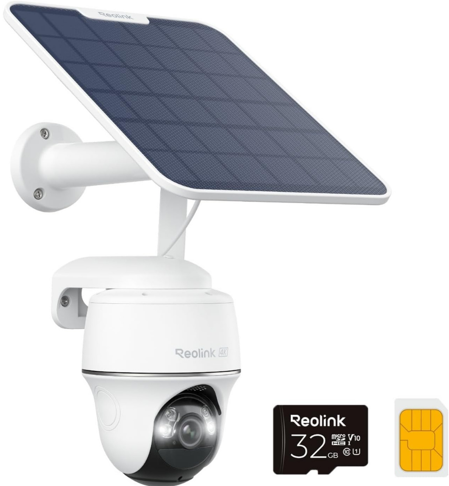 REOLINK 4K LTE Cellular Security Camera Wireless Outdoor, No WiFi, 3G/4G LTE, Solar Powered, SIM Card+32GB SD Card Included, Color Night Vision, Local/Cloud Storage, Go PT Ultra+SP, Updated Version