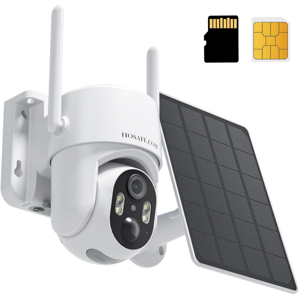 HOSAFE 4G LTE Cellular Security Camera No Internet Needed, Solar No WiFi Security Camera Outdoor Wireless With SIM Card Jobsite, 2K Color Night Version, 360 Live View, Motion Detection, 2-Way Audio