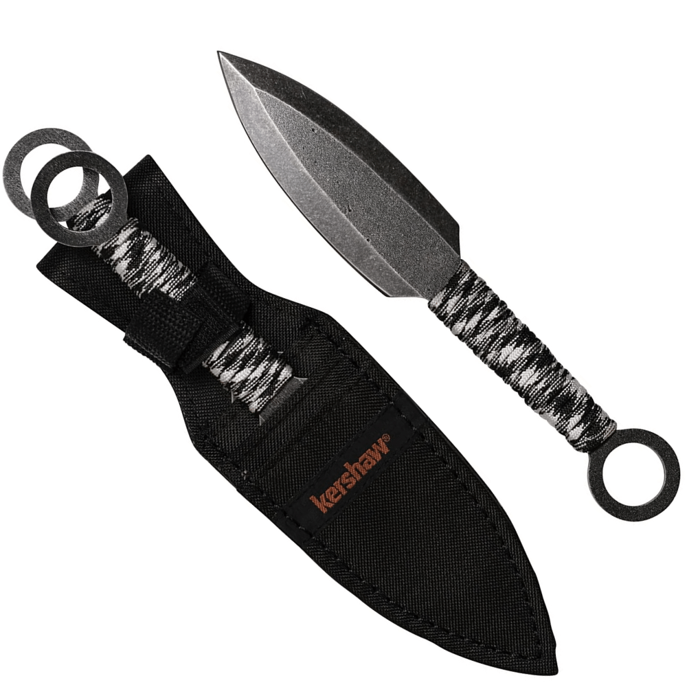 Kershaw Ion Throwing Knife Set (1747BWX); Three Full Tang 4.5 In. High-Performance 3Cr13 Double-Edged Spearpoint Blades; Black-Oxide Finish; Paracord Wrapped Handle; Includes Nylon Sheath; 4 OZ