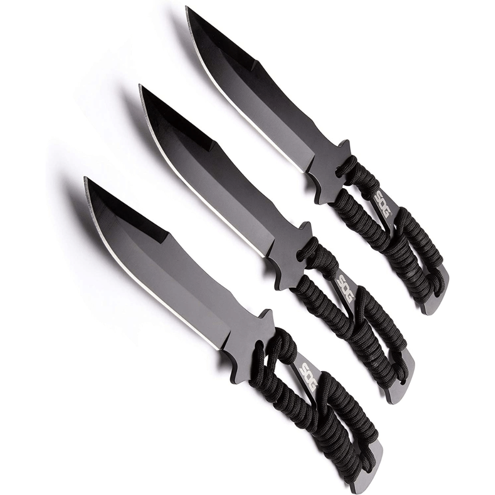 SOG Fling Throwing Knives- 3 Pack Balanced Throwing Knife Set with 2.8 Inch Steel Blades and 7 Feet Paracord Wrapped Handles- Black (FX41N-CP)