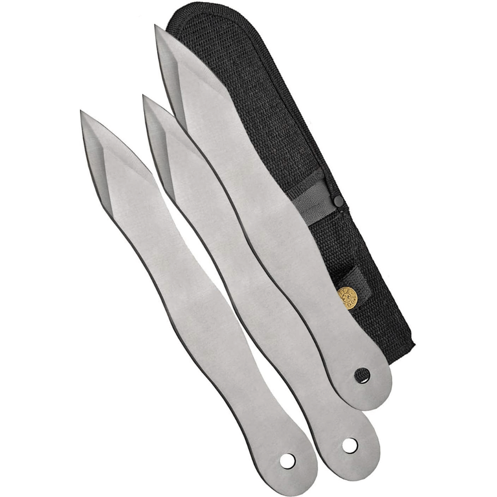 SZCO Supplies 10” Balanced Full-Tang Professional Stainless-Steel 3 Piece Throwing Knife Set with Nylon Sheath, Silver (211230-SL)