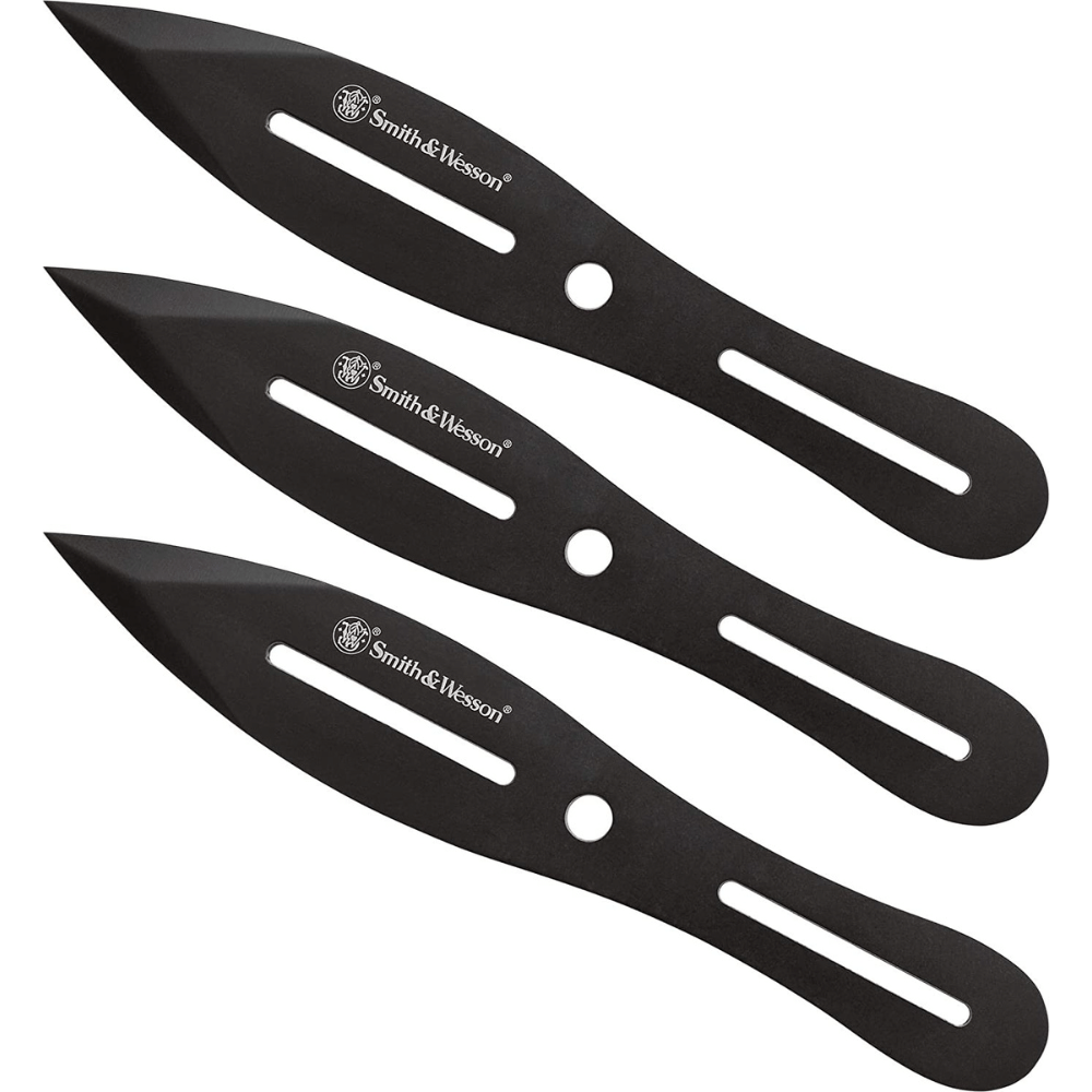 The Smith & Wesson SWTK8BCP kit is one of the most approachable throwing knife sets around. It comes with three handy, well-balanced 2Cr13 blades- each crafted from high-quality steel and weighing just 4 ounces!