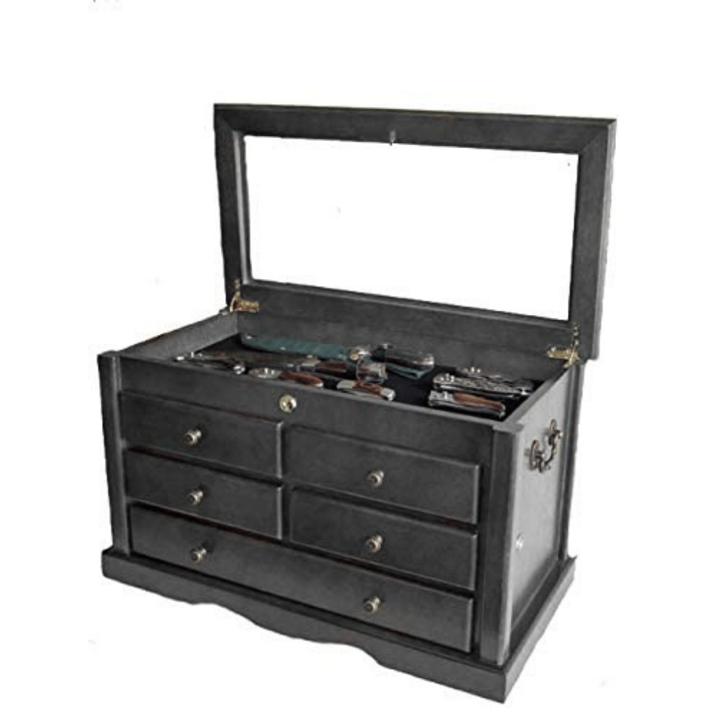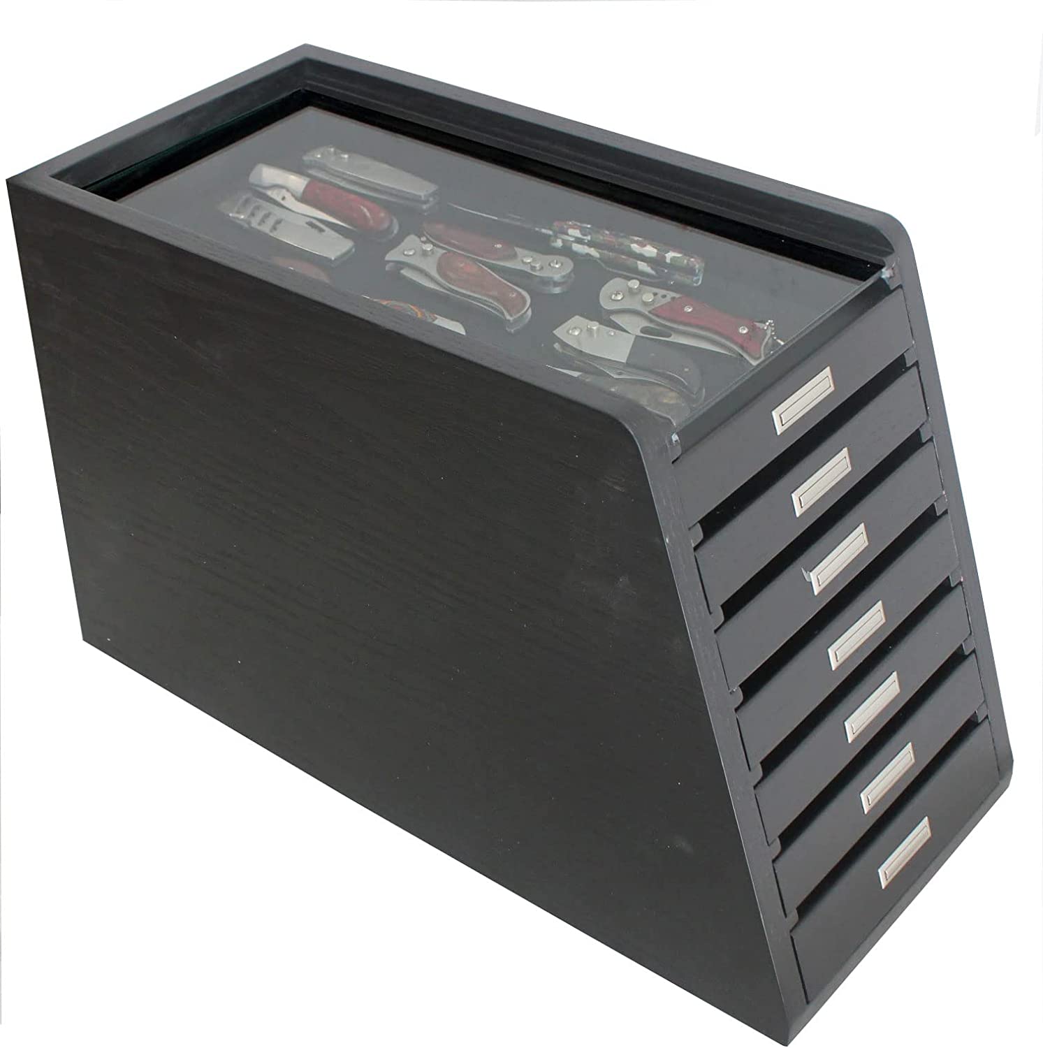 Collector's Choice Solid Wood Knife Display Case Tool Storage Cabinet w/ 5 Drawer Gallery Quality Black