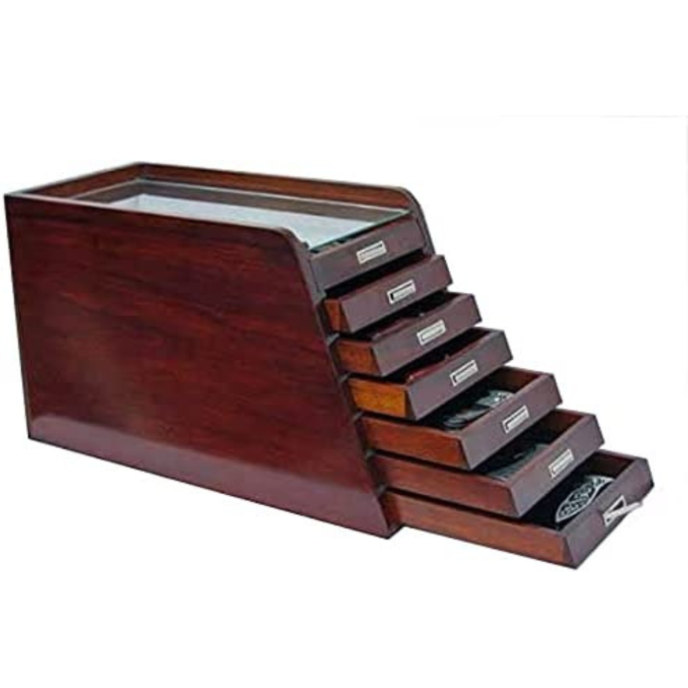 Collector's Knife Display Case Tool Storage Holder Cabinet Drawers Pocket Watch Collection Showcase Walnut Finish