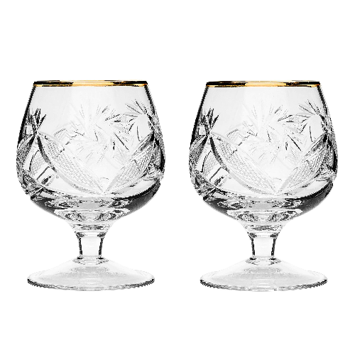 Neman Glassworks Set of 2 Hand Made Vintage Crystal Glasses, Brandy & Cognac Snifter with 24K Gold Rim, Old-Fashioned Glassware