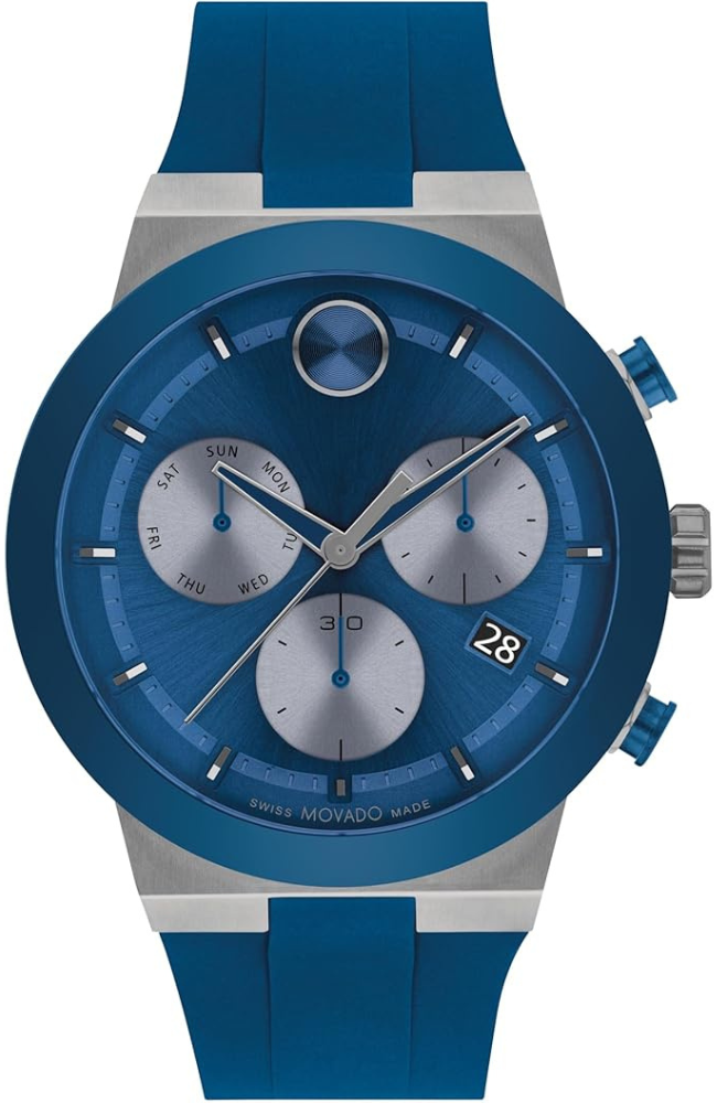 Movado Bold TR90 Luxury Chronograph Watch - Swiss Quartz Movement, Silicone Strap, Water Resistance 30 Meters (3ATM) - Sporty Timepiece - Gift for Him - 43.5mm