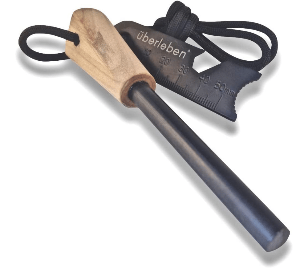 The hardwood handle of our fire starter is handcrafted from 100% natural materials to provide an organic, textured grip while you rain down molten spark showers at up 5500F/3000C and turn that rich finish into a seasoned one. Alongside this high heat, a specialist tool comes with included paracord lanyard. This 6-function striker will serve up spark showers at 5000F/3000C, a ruler, wrench, map scale, scraper, and the all-important bottle opener!