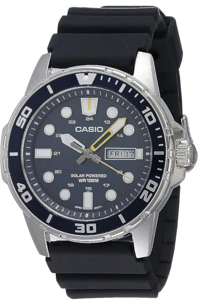 This durable, water-resistant case is built to handle everything from daily wear to serious swimming, with a 200-meter water-resistance rating. The unidirectional aluminum bezel adds to its classic dive-watch appeal, while the simple, clean dial makes it just as suitable for dress occasions as for casual weekends at the beach. Whether you’re adding it to your watch collection or looking for a reliable daily companion, the Casio Duro offers a bit of everything: classic style, durable construction, and a comfortable fit that never feels too big or bulky.