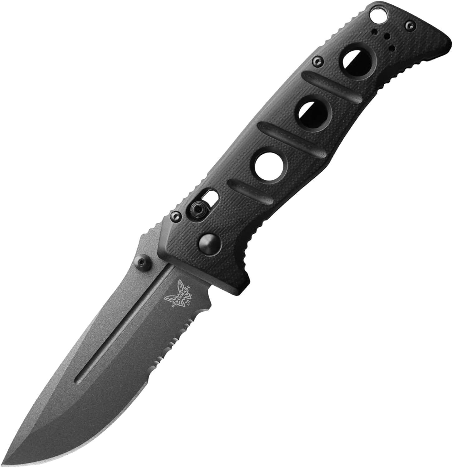 Benchmade - Adamas Tactical Knife, Serrated Edge, Drop-Point Blade with Black G10 Handle (275SGY-1)