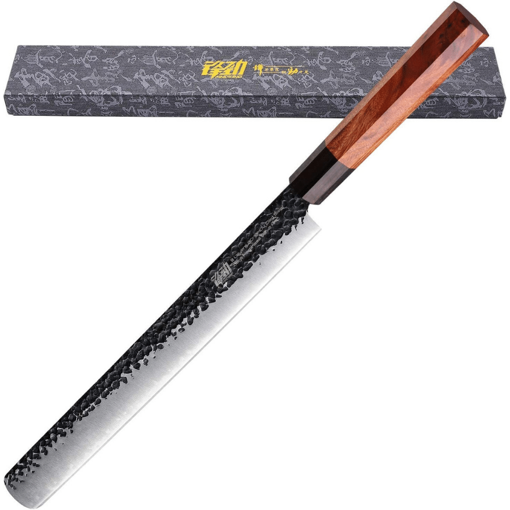Brisket Slicers are precision-forged from exclusive 7cr17Mov high carbon stainless steel with extra carbon, molybdenum, vanadium, and chromium for increased strength, durability, sharpness, and corrosion resistance, which prevents our chef's knife from rust and dulling even through years of use.