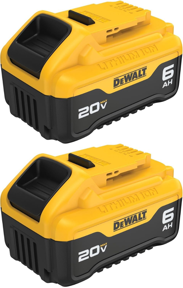 Powerful 20V MAX* Lithium-Ion Batteries: DEWALT's DCB206-2 pack includes two 6.0Ah lithium-ion batteries, providing ample runtime and power for your 20V MAX* tools.