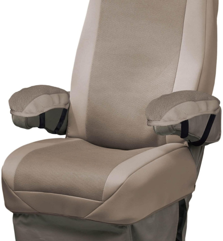 - Universal RV & Van seat cover featuring a Coolmax Fabric Panel that wicks moisture away, keeping you cool and dry during long drives.