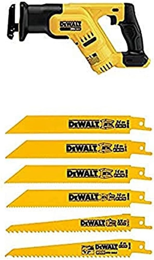 DEWALT DCS387B 20-volt MAX Compact Reciprocating Saw with Tool w/ DW4856 Metal/Woodcutting Reciprocating Saw Blade Set, 6-Piece