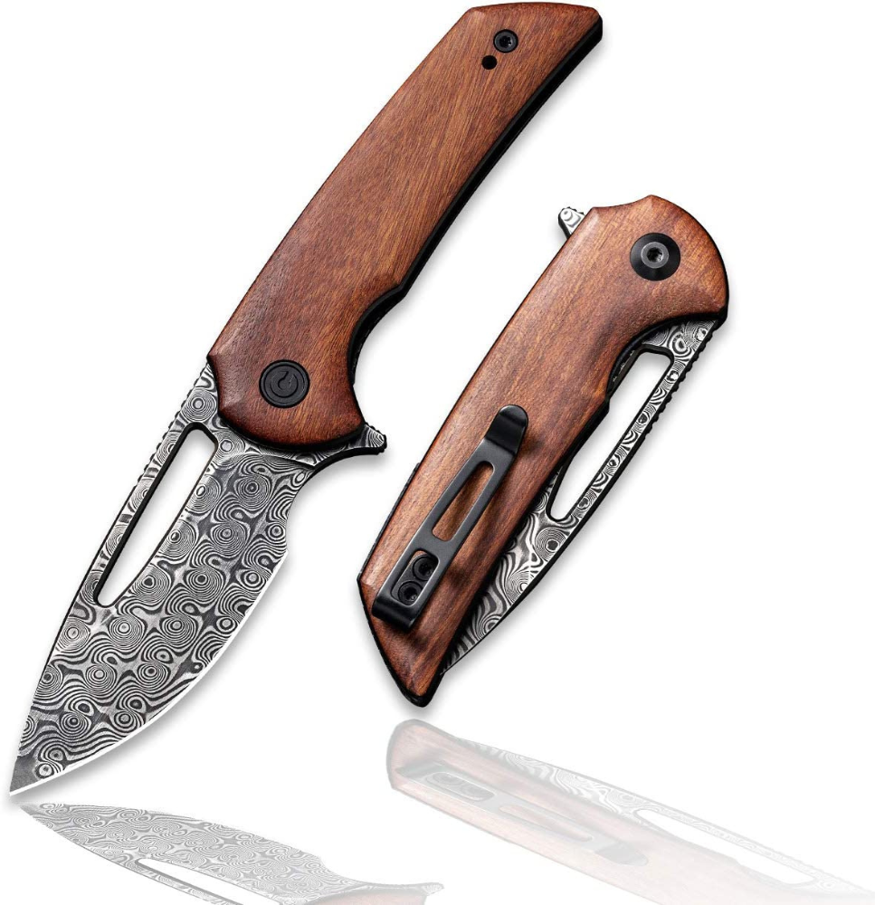 CIVIVI Odium Small Damascus 2.65" Flipper Cuibourtia Wood Handle