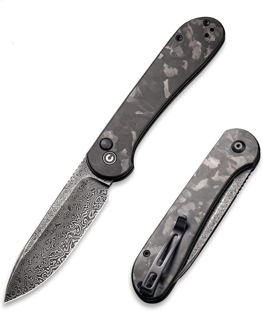 CIVIVI 3.47" Elementum Damascus Blade Marble Carbon Fiber Handle