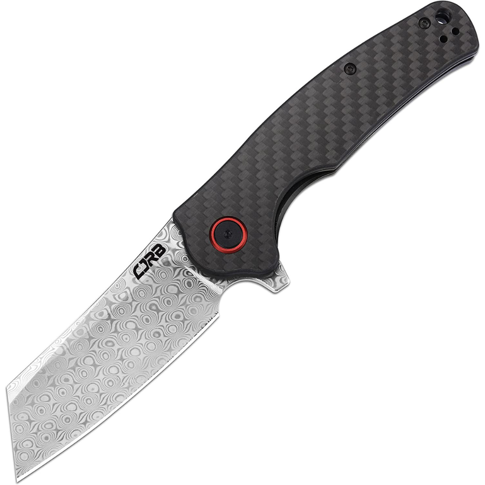 CJRB CUTLERY Crag Rose Damascus Steel Blade Carbon Fiber Handle