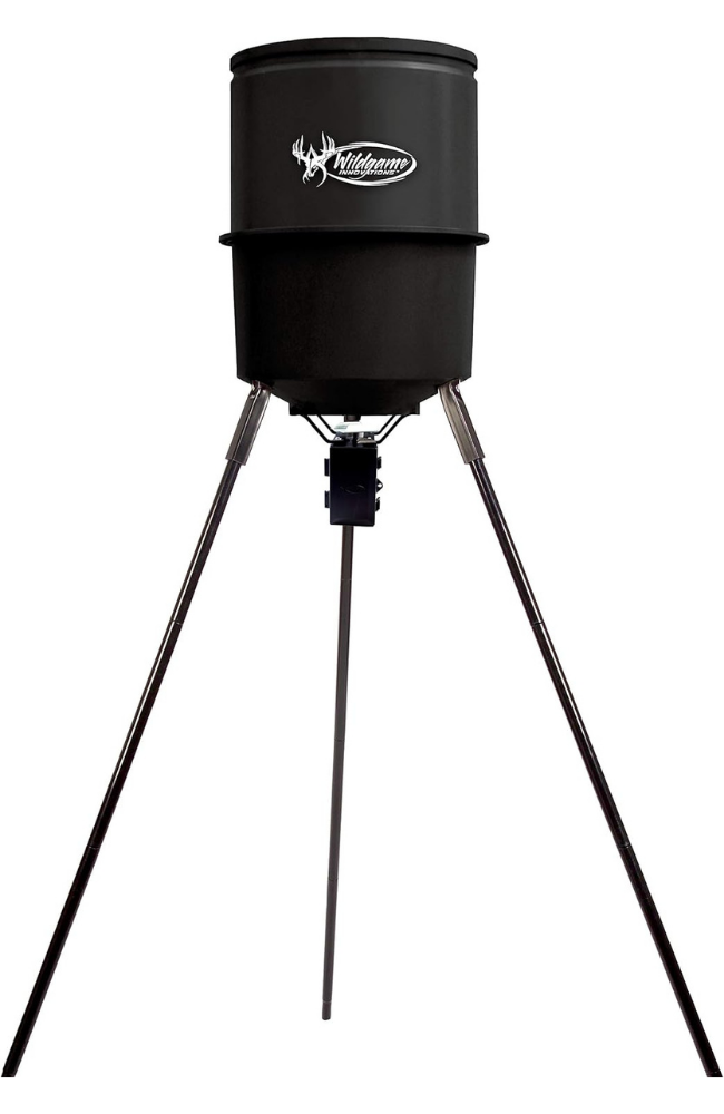 - HIGH PERFORMANCE - Attract and pattern deer and other game with the Wildgame Innovations Quick-Set feeder with timer; Durable and easy to use, this tripod pellet and corn feeder is equipped with a built-in funnel that ensures accurate feed dispersal