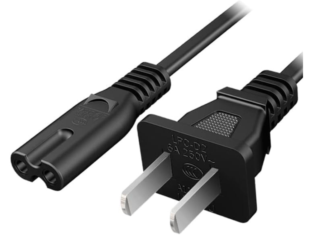 - Power Cord Type: Non-Polarized 2-Prong Figure 8 Power Cord (IEC 60320 C7 to NEMA 1-15P), 18 AWG, 125V, 10A. Please note: The power cord interface is a 2 Prong Figure 8 (IEC320 C7 to NEMA 1-15P), not a three-prong interface.