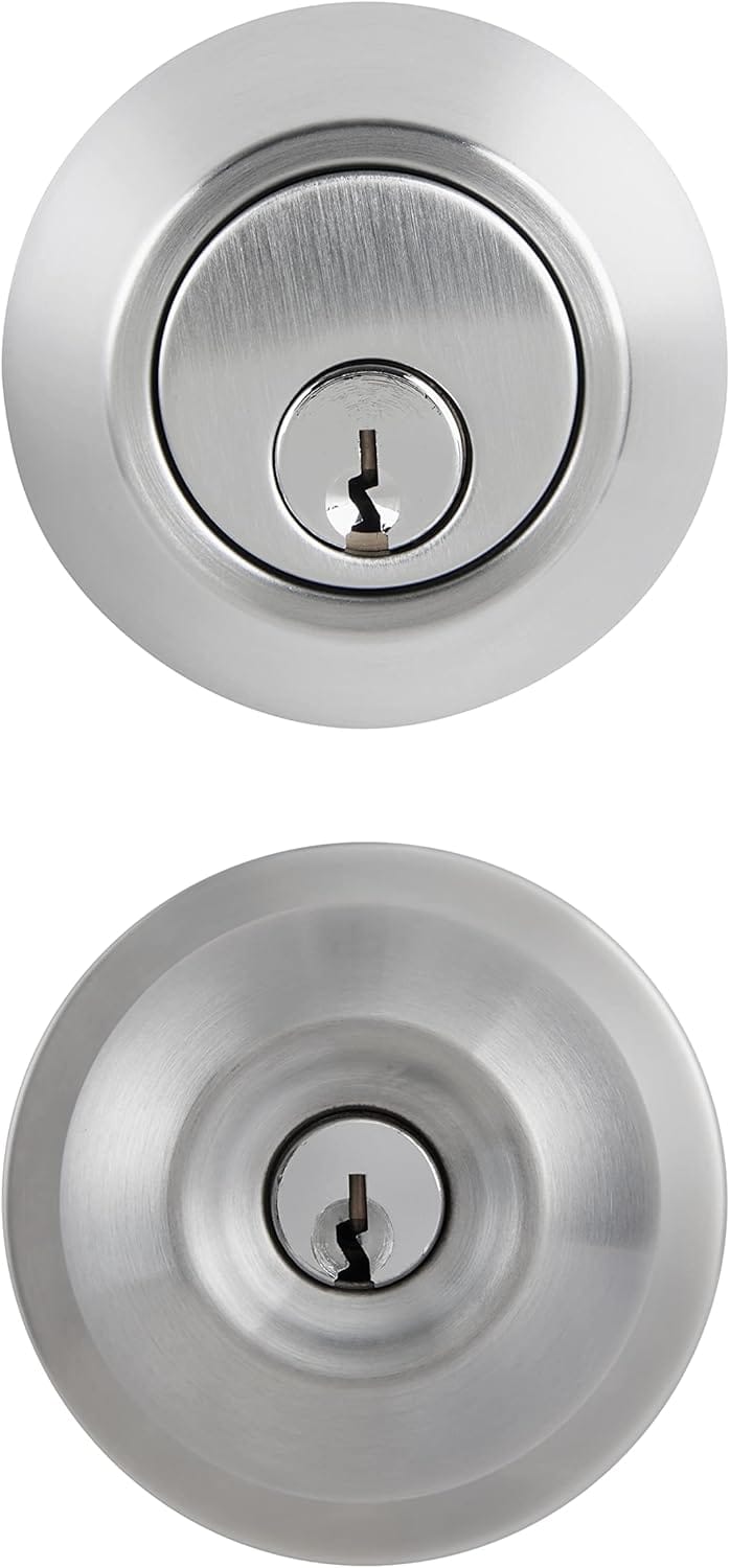 - FEATURES - This door knob and deadbolt set is designed for convenience and versatility. Locks and unlocks from the inside with a thumb turn, and from the outside with a key (included with purchase).