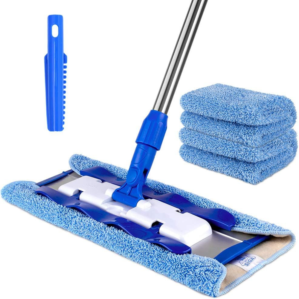 - DURABLE CONSTRUCTION - Built with durable plastic and sturdy stainless steel handle, includes 3 reusable microfiber cloths and 1 dirt removal scrubber, applies to all kinds of floor such as hardwood, tile, marble, laminate, vinyl, makes the boring chore of cleaning your floors easy.
