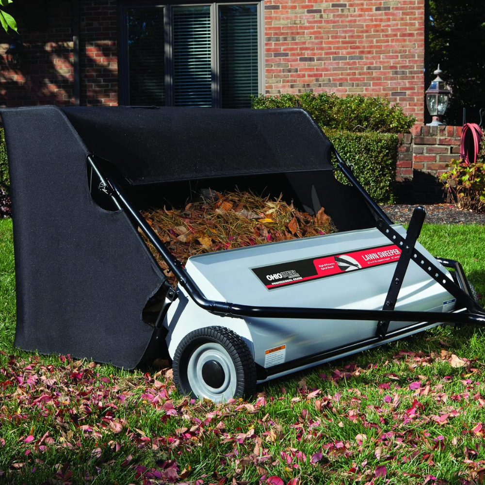 - An Agri-Fab lawn sweeper will make your life easier because of its exceptional performance helping you clean up grass clippings in the spring and summer, or cleaning up leaves and small twigs in the fall, Semi-pneumatic wheels & metal pinion gears