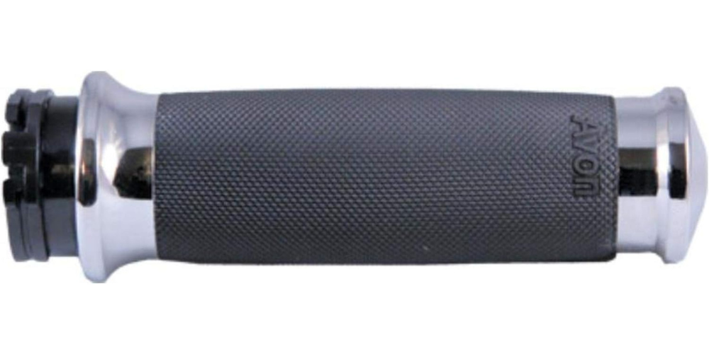 Crafted with meticulous attention to detail, the Avon Custom Contour Chrome grips are designed to fit your hands perfectly and tailored specifically for your bike. Made in the USA using high-quality Kraton rubber, these grips offer a soft serrated texture that ensures a secure and comfortable grip as you ride. The exceptional quality extends to the 6061 billet aluminum end caps and collars, which not only enhance durability but also add a touch of elegance to your bike's handlebars.