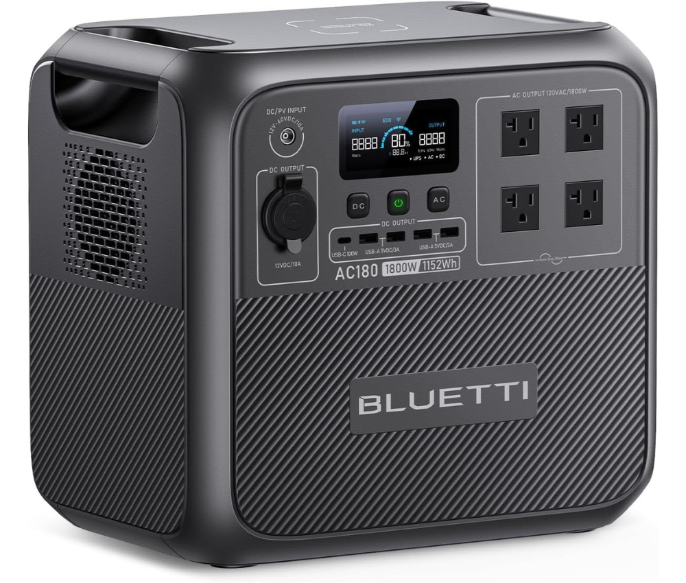 BLUETTI AC180 Portable Power Station, 1152Wh LiFePO4 Battery Backup w/ 4 1800W (2700W peak) AC Outlets, 0-80% in 45Min, Solar Generator for Camping, Off-grid, Power Outage