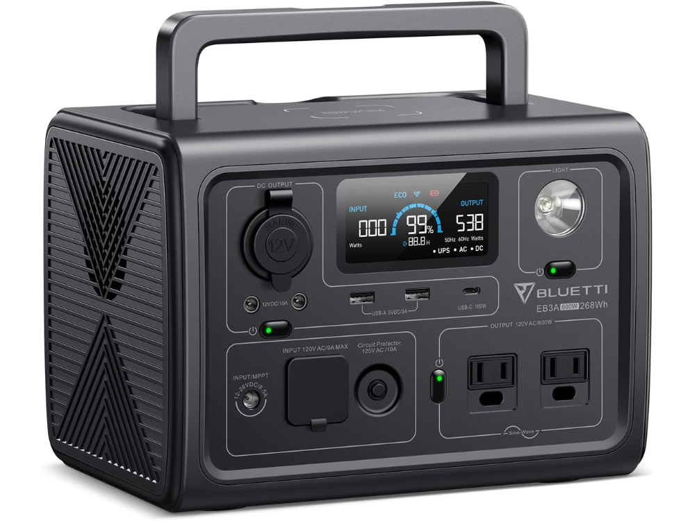 BLUETTI EB3A Portable Power Station, 268Wh LiFePO4 Battery Backup w/ 2 600W (1200W Surge) AC Outlets, Recharge from 0-80% in 30 Min., Solar Generator