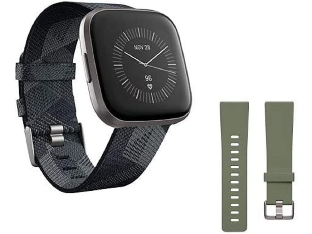 - Includes all Versa 2 features plus a premium jacquard woven band, an extra classic silicone band